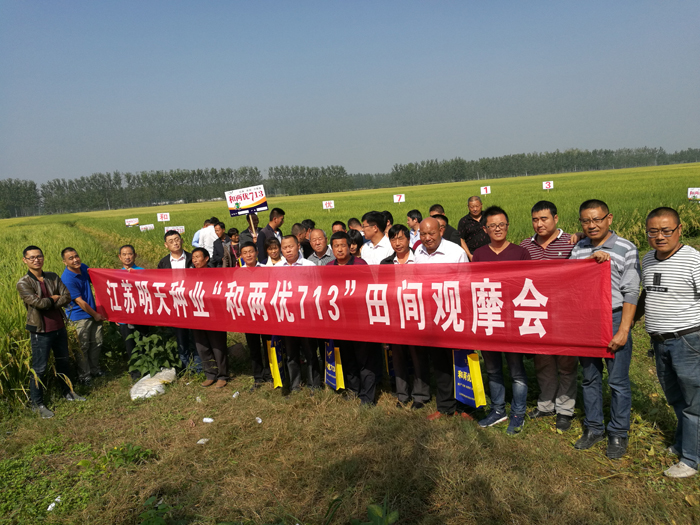 2017年9月28日和兩優(yōu)713江蘇北片現(xiàn)場(chǎng)觀摩會(huì)在宿遷市成功召開。來自宿遷、徐州、睢寧、泗陽、邳州、沭陽、泗洪等縣代理商及鄉(xiāng)鎮(zhèn)經(jīng)銷商對(duì)江蘇明天種業(yè)2017年隆重推出的雙國審雜交水稻新品種“和兩優(yōu)713”進(jìn)行現(xiàn)場(chǎng)觀摩。