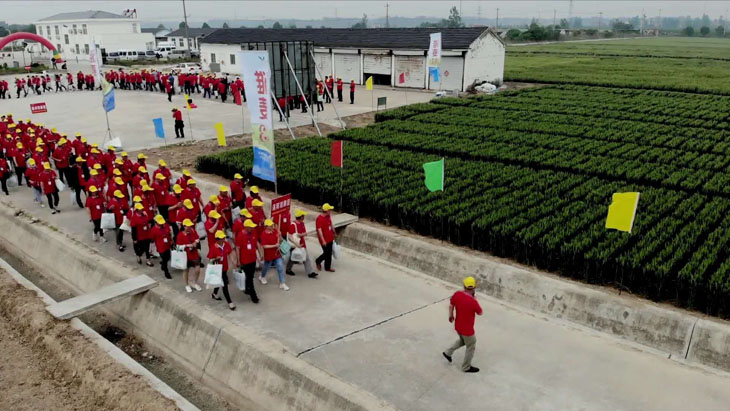 第三部分在所有觀摩環(huán)節(jié)結(jié)束后,所有參會(huì)人員以縣為單位集中在睢寧育種基地發(fā)曬場(chǎng)上,排成縱隊(duì)高喊“要想糧食堆成山,就種淮麥33”的口號(hào)。