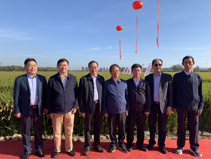 專家領(lǐng)導(dǎo)田間實地查看“南粳3908”田間長勢長相
