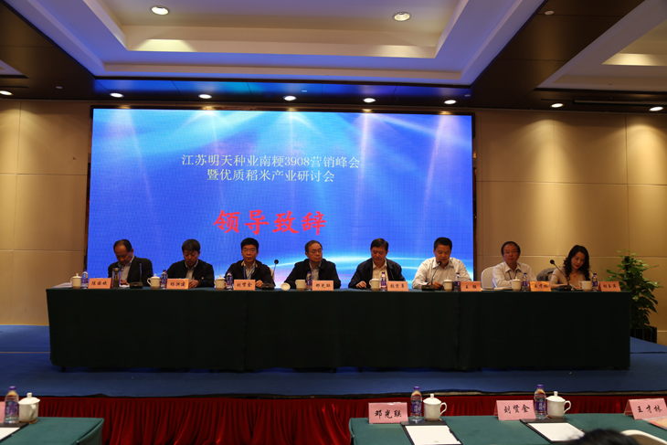 金秋十月,秋風(fēng)送爽,種植“南粳3908”的田間稻香四溢,沉甸甸的稻穗隨風(fēng)起伏,一片豐收在望的喜人景象。10月15~16日,我公司好味稻米新品種“南粳3908”營銷峰會暨優(yōu)質(zhì)稻米產(chǎn)業(yè)研討會在丹陽召開。會議邀請了中國種子協(xié)會副會長鄧光聯(lián)、江蘇省農(nóng)科院副院長劉賢金、江蘇種業(yè)協(xié)會會長張堅勇、江蘇省農(nóng)技推廣站站長管永祥、江蘇省農(nóng)技推廣站副站長楊洪建、江蘇省種子站副站長陳國斌、丹陽市副市長王強、江蘇省著名水稻育種家王才林研究員等領(lǐng)導(dǎo)專家出席。來自江蘇、安徽各地的種子經(jīng)銷商、種植大戶和稻米加工企業(yè)代表等200余人濟濟一堂,甚是熱鬧。