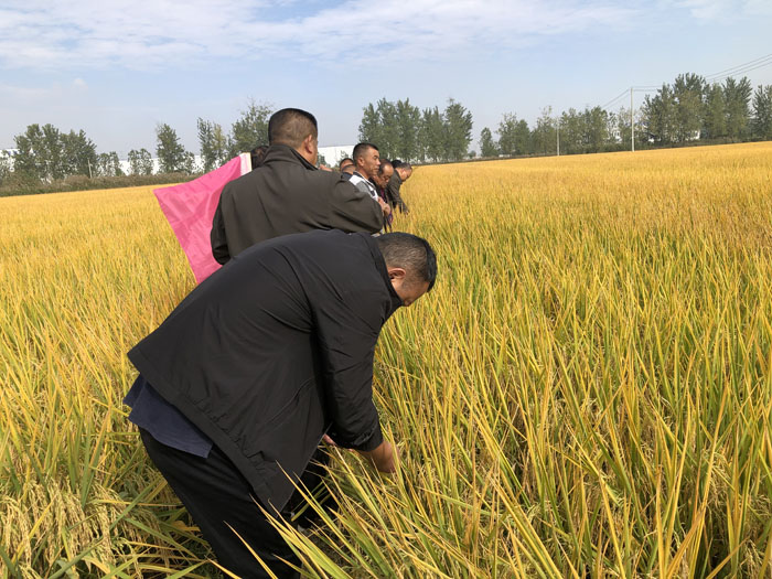 風吹楊柳盡,雨落稻花香。金秋十月,金黃的稻谷隨著秋風翻起金波,豐收在即。公司于108-9日在江蘇省睢寧縣隆重召開明兩優絲苗田間觀摩會議。參加會議有江蘇明天種業科技股份有限公司副總經理王波、總經理助理楊海波及公司代表,睢寧縣明兩優絲苗核心代理商彭奔、各縣市經銷商、種植大戶、育秧合作社代表共計100余人參加會議。