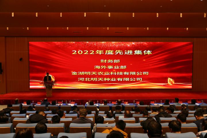 嚴總在工作報告中指出2022年是明天種業不平凡的一年,在面對新冠疫情、市場競爭日趨激烈的嚴峻形勢,公司領導班子同心同德、精心組織;各級管理人員積極響應、主動作為;一線員工愛崗敬業、工作勤奮;全體員工齊努力,共克難,經受住了考驗。公司各項事業穩步推進,成果豐碩。2022年銷售和利潤取得新的雙突破,實現四連增;公司被農業農村部列入“國家種業陣型企業”和再次被認定為“中國種業信用骨干企業”,綜合排名第11位;“制種大縣+龍頭企業”項目順利實施,金湖產業園建設基本完成。2023年是公司第一個五年規劃實施的關鍵第四年,全面完成全年的工作目標任務對明天種業未來的發展意義深遠。公司將全面貫徹落實黨的二十大精神,全面落實“以國內市場為主體,創新升級實現跨越,以國外市場為突破,積聚資源,注重實效”的戰略部署,“搶抓種業振興機遇,拼出更加美好明天”為行動綱領,超前謀劃、統籌管理、積極落實,確保2023年經營目標任務的實現。